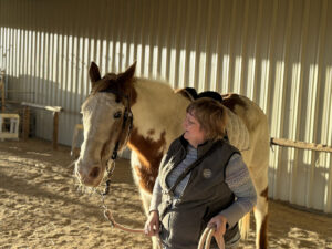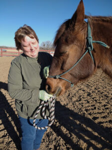 I’ve been volunteering just over 4 years, since winter session before COVID.  I did my first sidewalking winter session and started horseleading in spring, but spring session 2020 was canceled and we all went home due to the pandemic.  By summer session, we were back in classes in a limited fashion, with all sorts of COVID precautions including masking in classes.  I volunteered all through COVID and continued after restrictions were lifted.