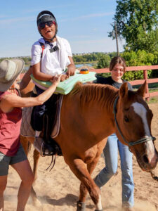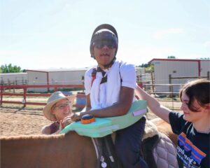 Te’s journey at the Colorado Therapeutic Riding Center (CTRC) is a remarkable testament to the transformative power of therapeutic riding. Te started riding at CTRC when he was four years old. Now sixteen, Te finds joy at CTRC through the support of his family, the volunteers and staff, and his cherished horse, Magic. Despite being non-verbal, non-ambulatory, and immune-compromised, Te has shown incredible resilience.