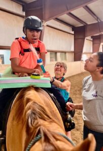 Riding is especially meaningful to Te because it’s an activity he can share with his sister. Cea, who has been trained as a sidewalker. The family often goes to the center for Te’s lessons together and Cea helps and encourages Te. This allows them to connect in a unique way that isn’t easy to create opportunities for in light of Te’s disabilities. CTRC has also become a pivotal part of Te’s family life. His mother appreciates the connections made with other parents of disabled children and the opportunity for both of her children to interact with animals and horses together. The family has found a supportive community among fellow riders’ guardians, where friendships are formed and shared experiences enrich their lives. Te’s involvement with CTRC even inspired his music therapist to compose a piece, “Te on the Wings of Magic,” which was performed by Te’s school band, celebrating his unique journey and achievements.
