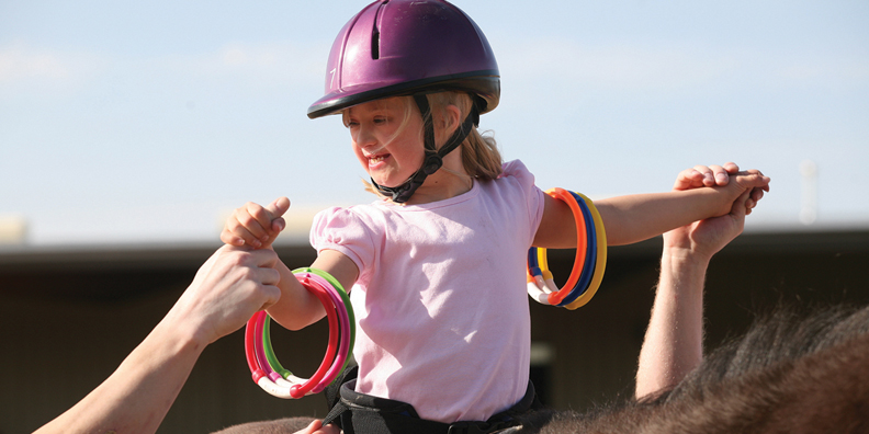 Using the horse as a dynamic base to facilitate non-static postural control Equine Assisted Therapy fosters improved trunk mobility and strength which in turn, affects overall limb function. The horse’s natural three-dimensional movement mimics a typical human gait creating a gentle rhythmic movement that aids in improving overall balance, strength, muscle control and tone, motor development and coordination.